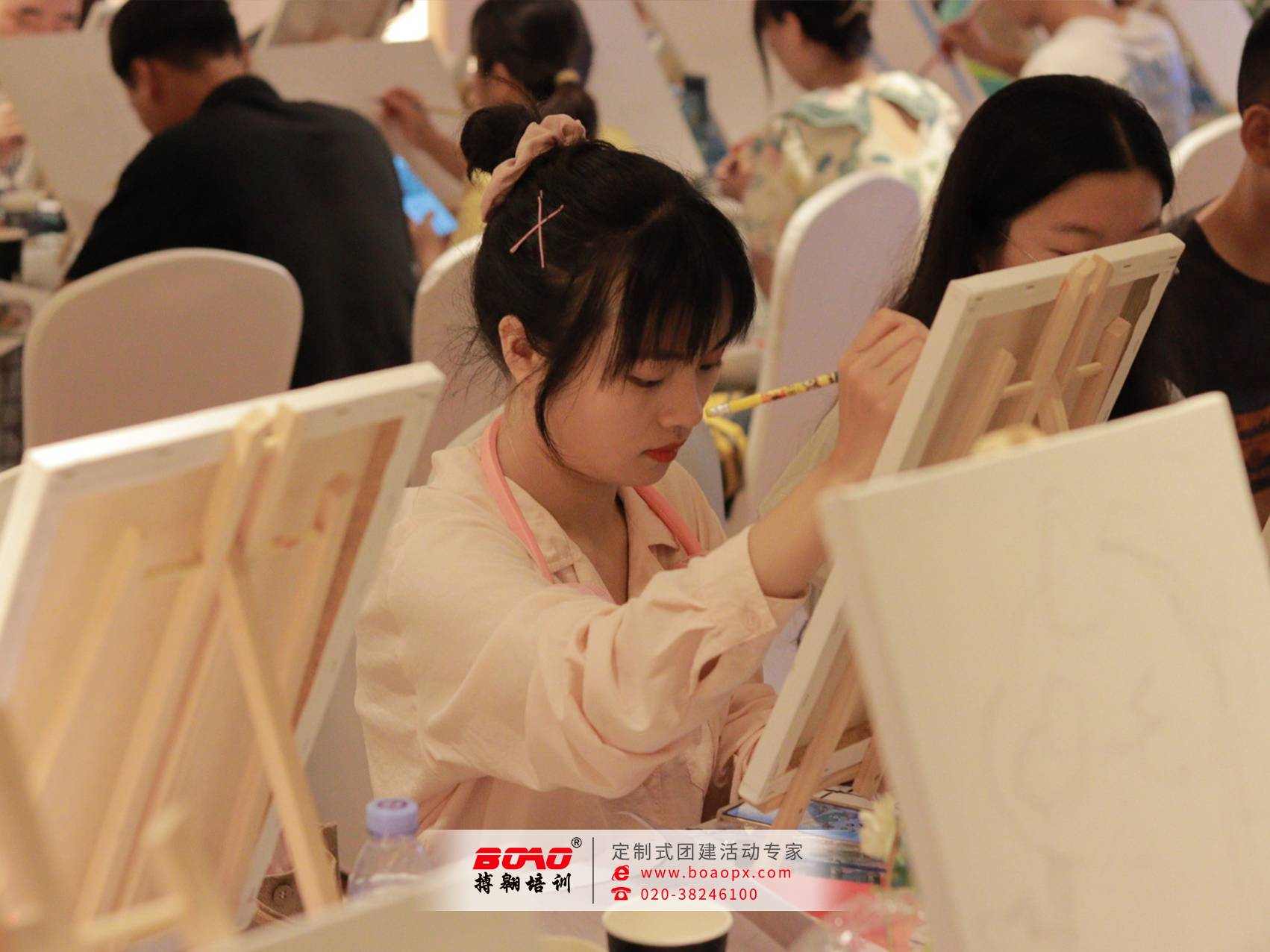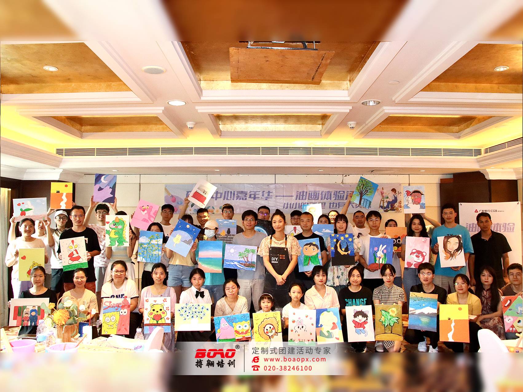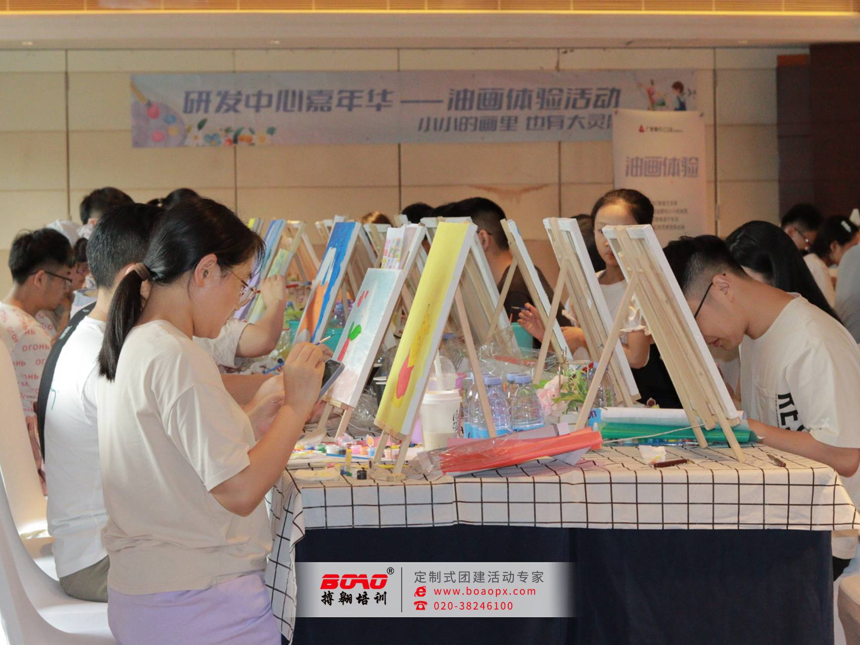 近日,佛山廣發(fā)研發(fā)中心再次與搏翱廣州拓展培訓公司組織了一場手工創(chuàng)作“桌上油畫”。