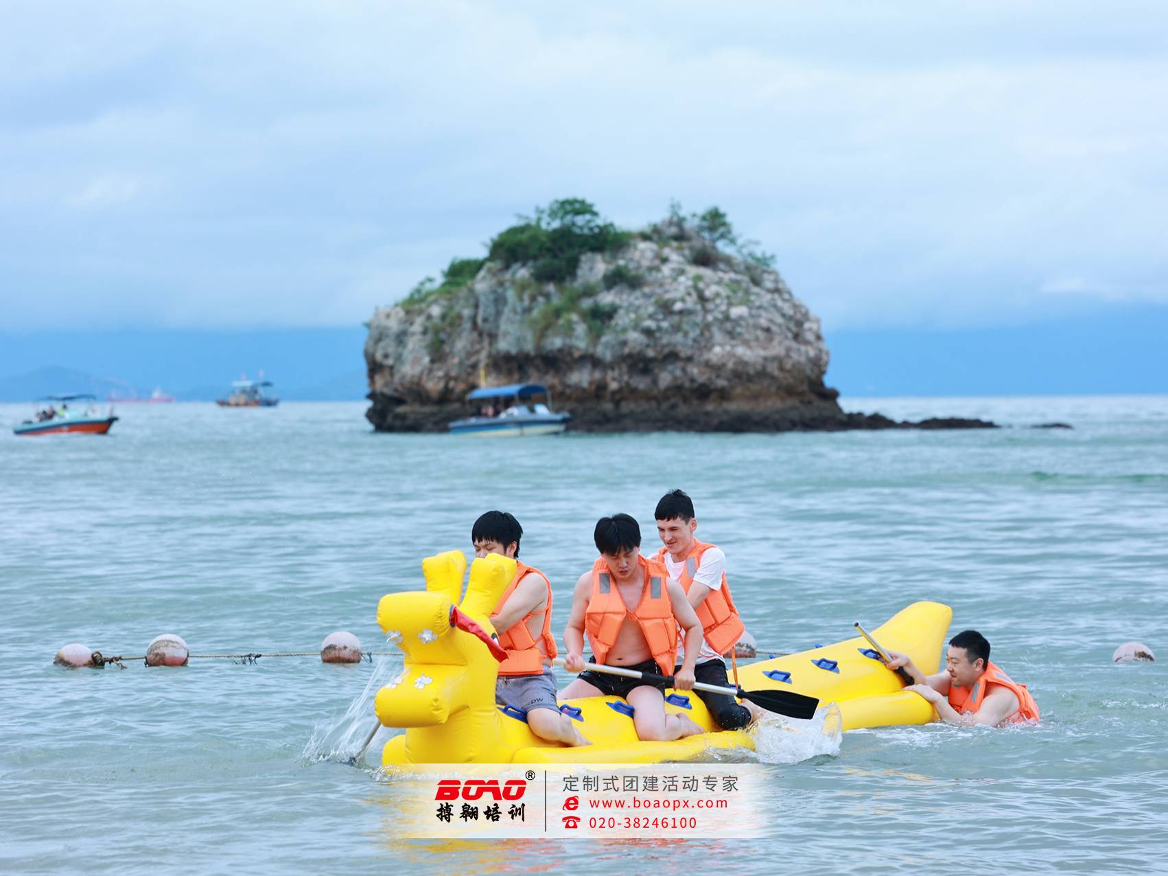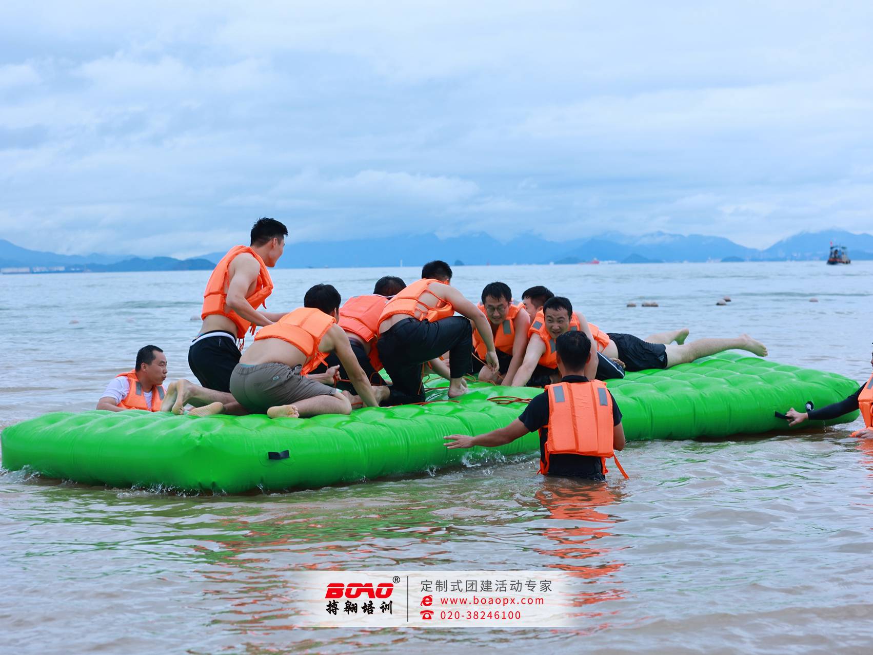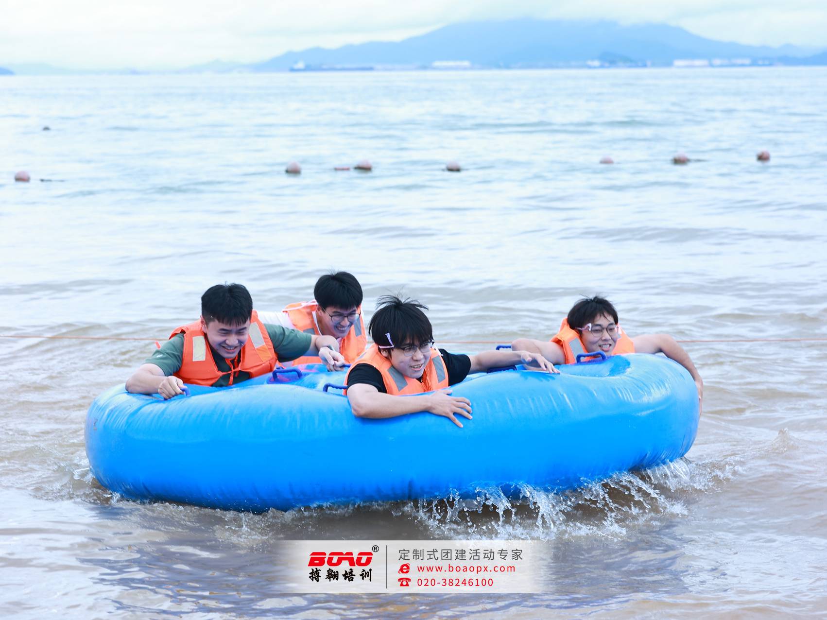巽寮灣是著名的海濱旅游風景區:“全國最佳休閑名鎮”、“全國特色景觀旅游名鎮”、“廣東十大美麗海岸”、“國家4A級旅游景區”,素有“東方夏威夷”之美譽。那里的優美風景以奇聞名,海奇、灘奇、山奇、石奇、洞奇,八個海灘相連,沙灘晶瑩細軟,海水清澈,海底坡度平實,百米內水深不超過2米,特別是巽寮灣沙灘長達3000多米,綠樹林帶環境,被譽為"天賜白金堤",是得天獨厚的天然海水浴場。在這夏日炎炎天氣,廣汽研究院和搏翱廣州拓展培訓公司也攜手策劃了一場水上運動會。夏日的熱浪滾滾而來,巽寮灣體驗式拓展基地一片清涼的天地,釋放你的活力與激情!本次團建運動會也安排有刺激的水上龍舟、有趣的八仙過海、水上NBA投籃、水上拔河、熱血的沙灘排球,還有激情四溢的沙灘足球。